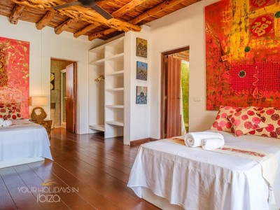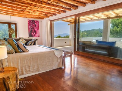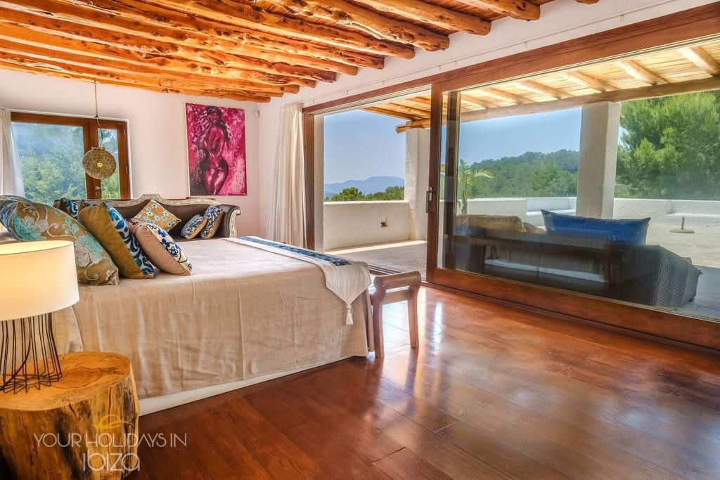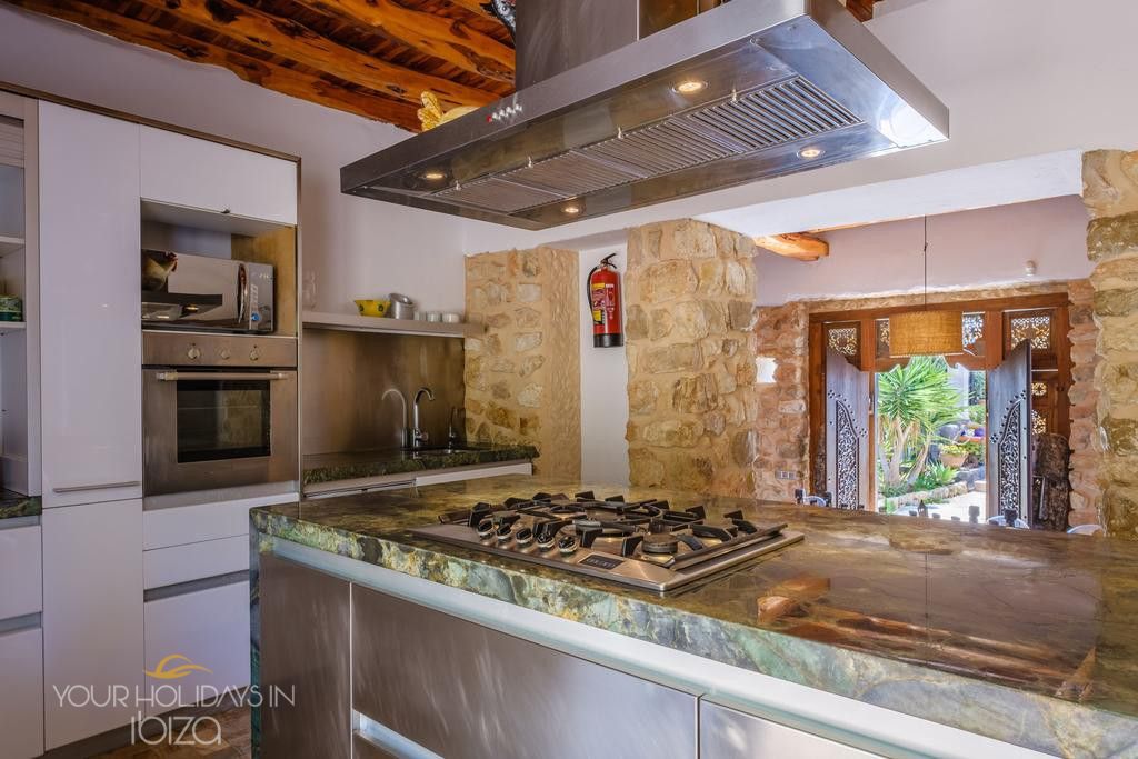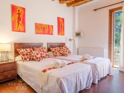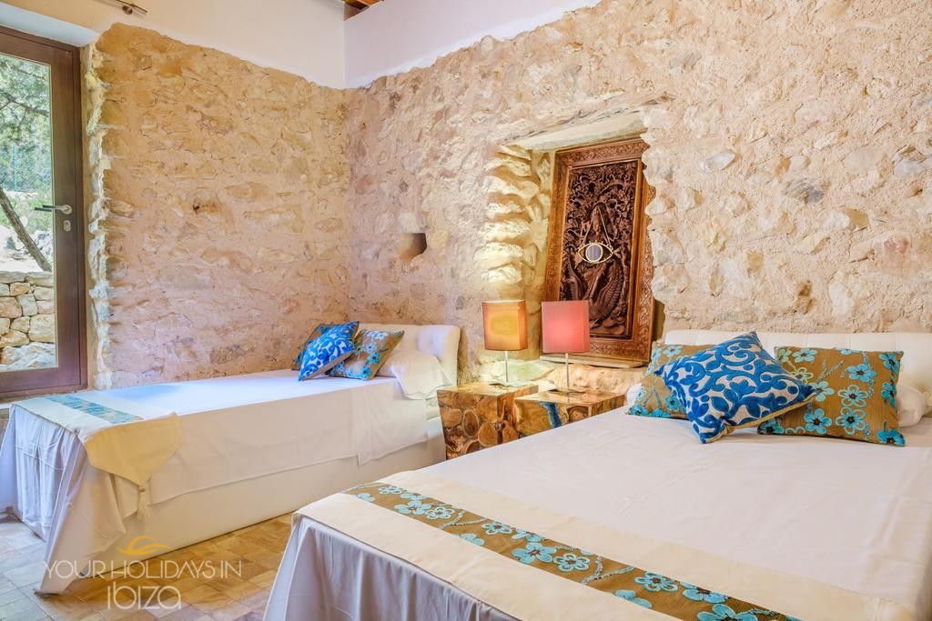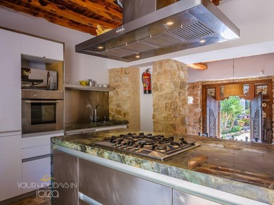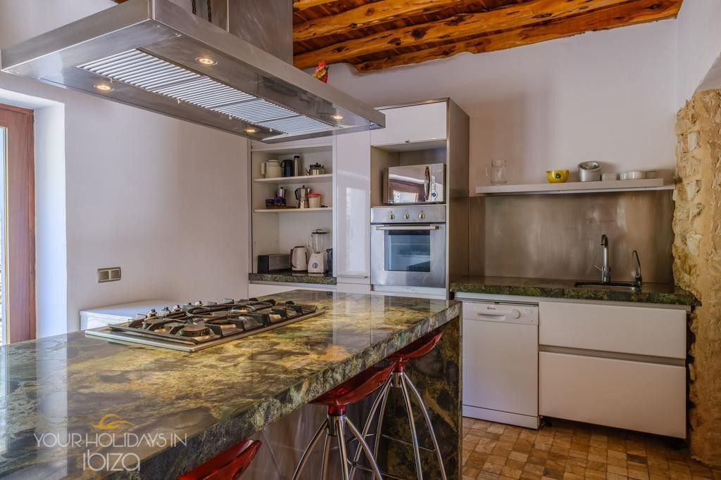 Its remote location makes the rental of a vehicle fundamental. The nearest beach is the beautiful Cala Salada, a 5-minute drive away, while getting to San Antonio and its shops, nightclubs and the promenade Cafés will only take you 10 minutes. Pets friendly