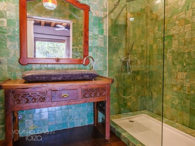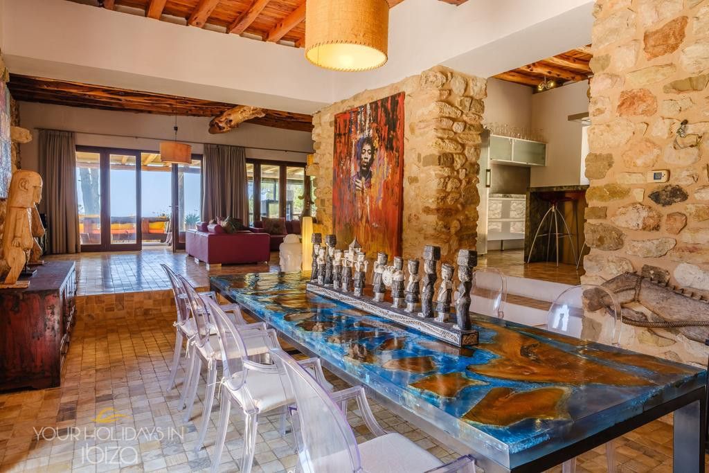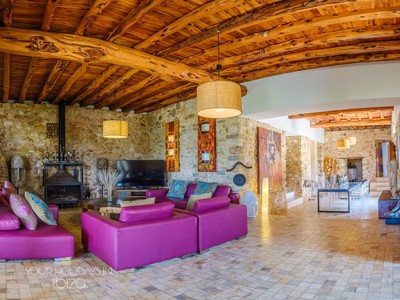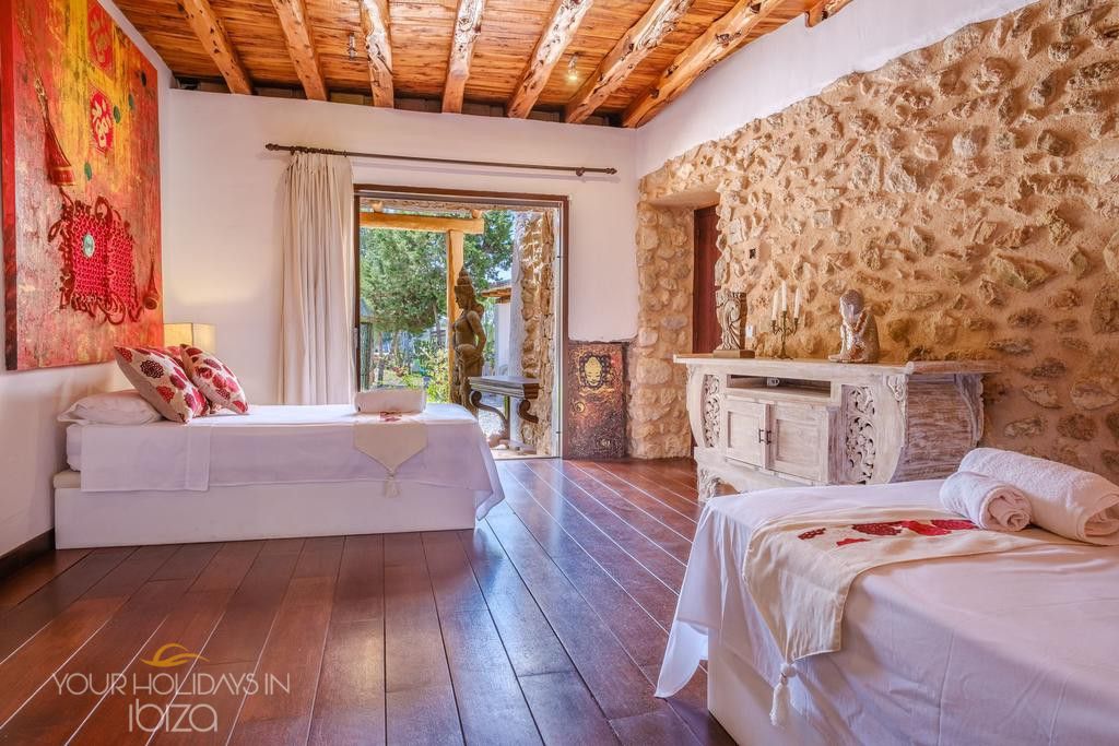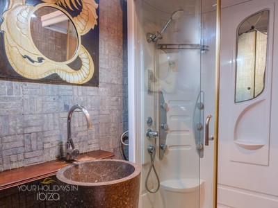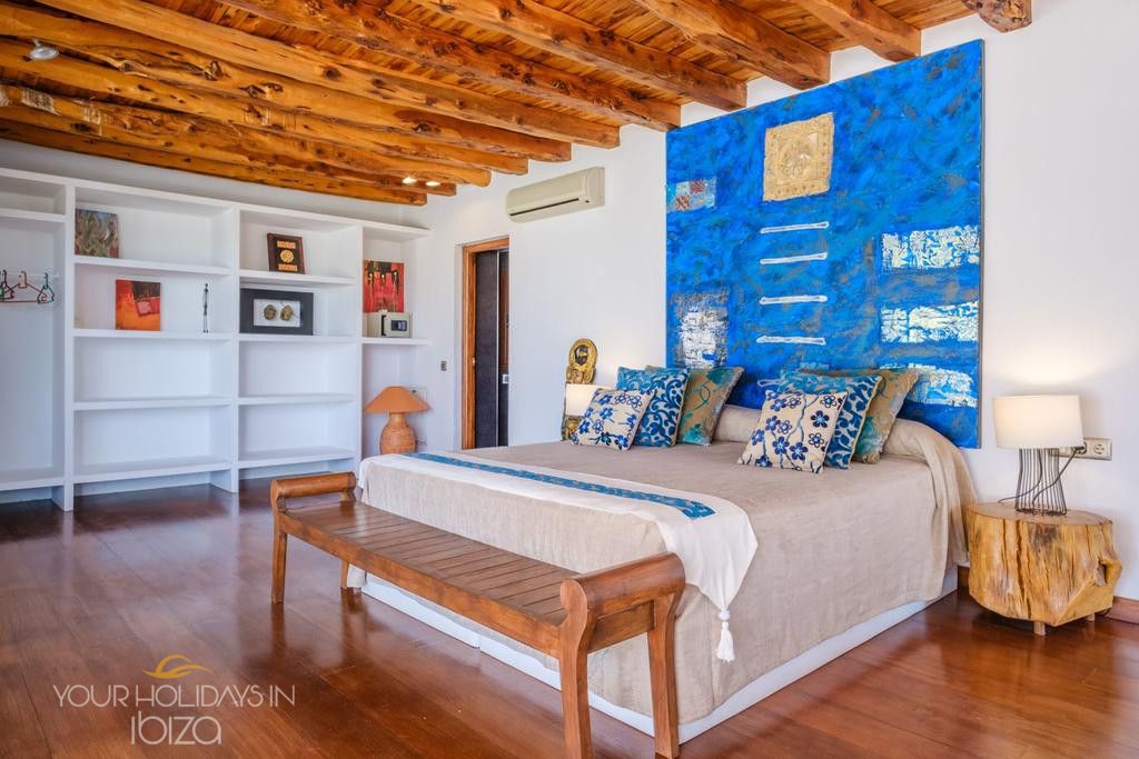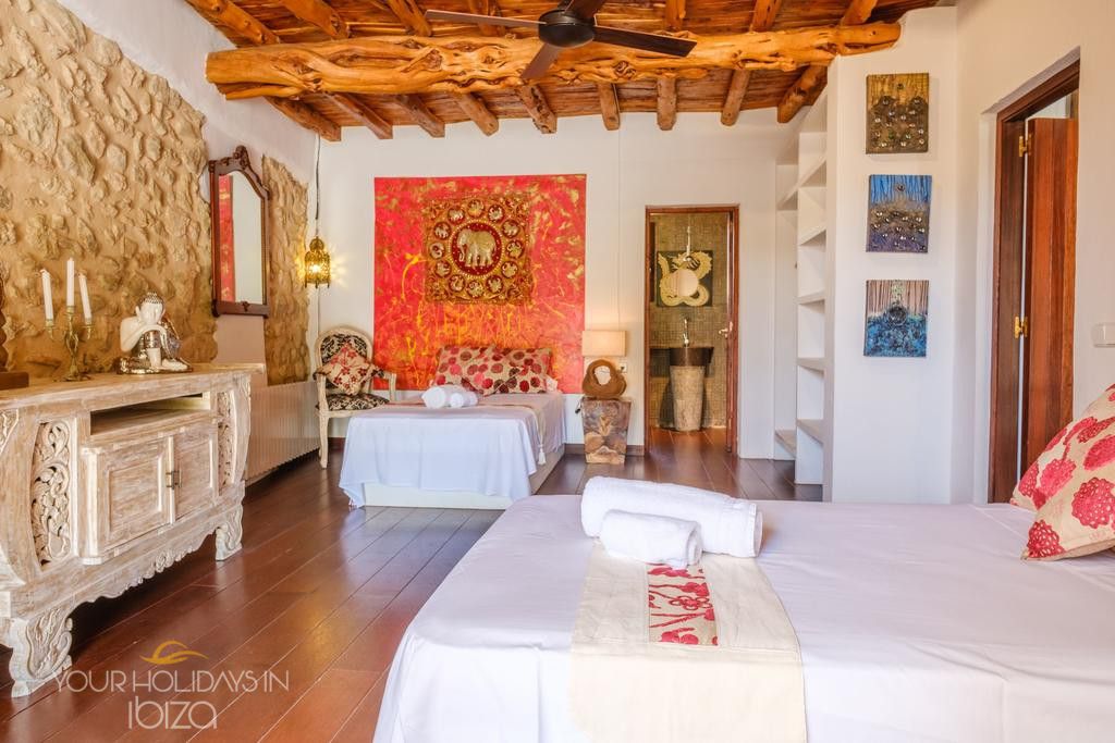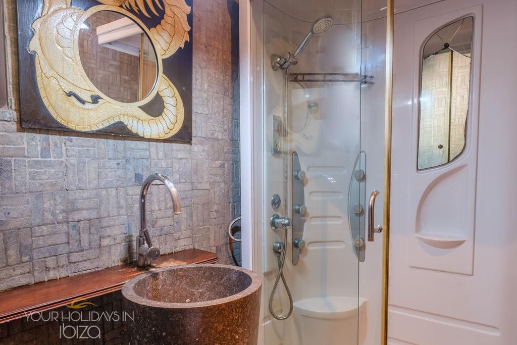 Its remote location makes the rental of a vehicle fundamental. The nearest beach is the beautiful Cala Salada, a 5-minute drive away, while getting to San Antonio and its shops, nightclubs and the promenade Cafés will only take you 10 minutes. Pets friendly