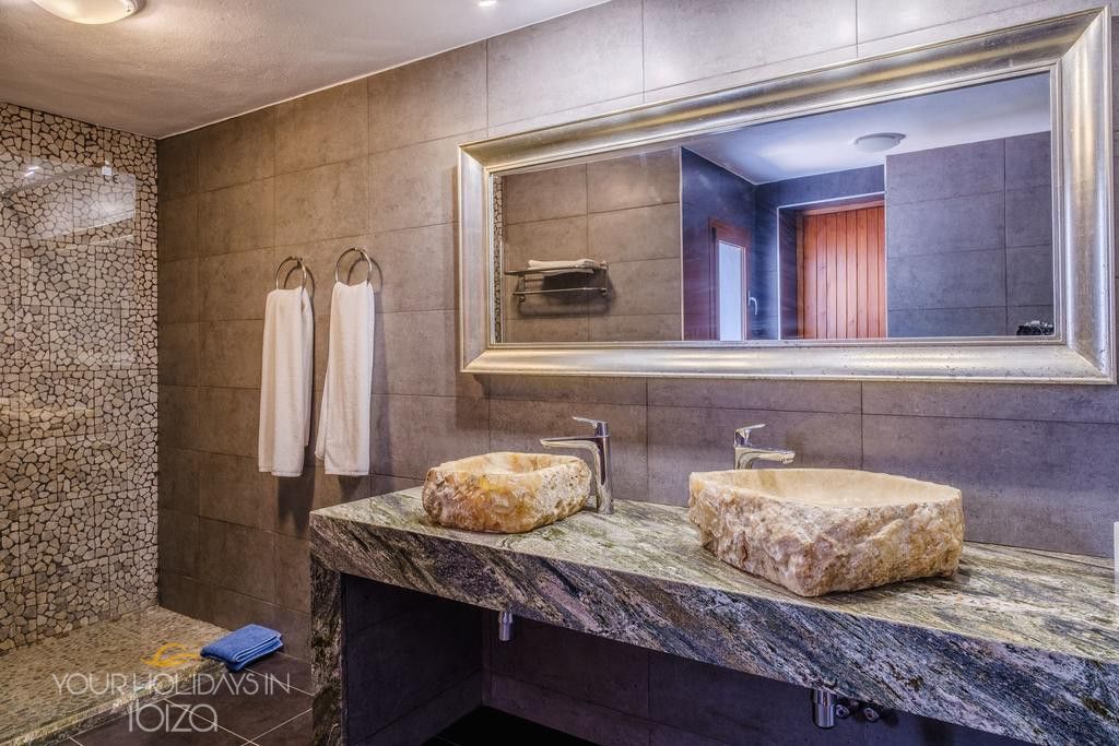 They are 5 double bedrooms – 4 of them en suite which add up to a total of 5 bathrooms. There is enough space for up to 10 people, whether groups or families. Looking for the safety of the children, it is possible to fence the swimming pool on request. This villa is also ideal for weddings, as the master bedroom on the top floor includes a private terrace of 100m2 with the best views to the sea from the entire property.