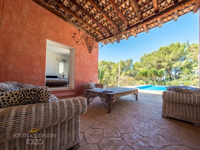 Villa Mimosas Ibiza Holidays ideal for couples. Our is a Mediterranean style villa located between Porroig and Es Cubells, in the south of the island with a swimming pool and a large outdoor area. Distributed on a single floor decorated with great style where you can enjoy everything from a magnificent dining room to an entertaining barbecue with your table. Without forgetting its especially cared for exterior, a cozy corner with an incredible pool surrounded by pine trees. The villa has 1 bedroom, 1 bathroom, distributed over 1 floor. The comfort and proximity to the beach make this villa an ideal accommodation to spend your holidays with family or friends.