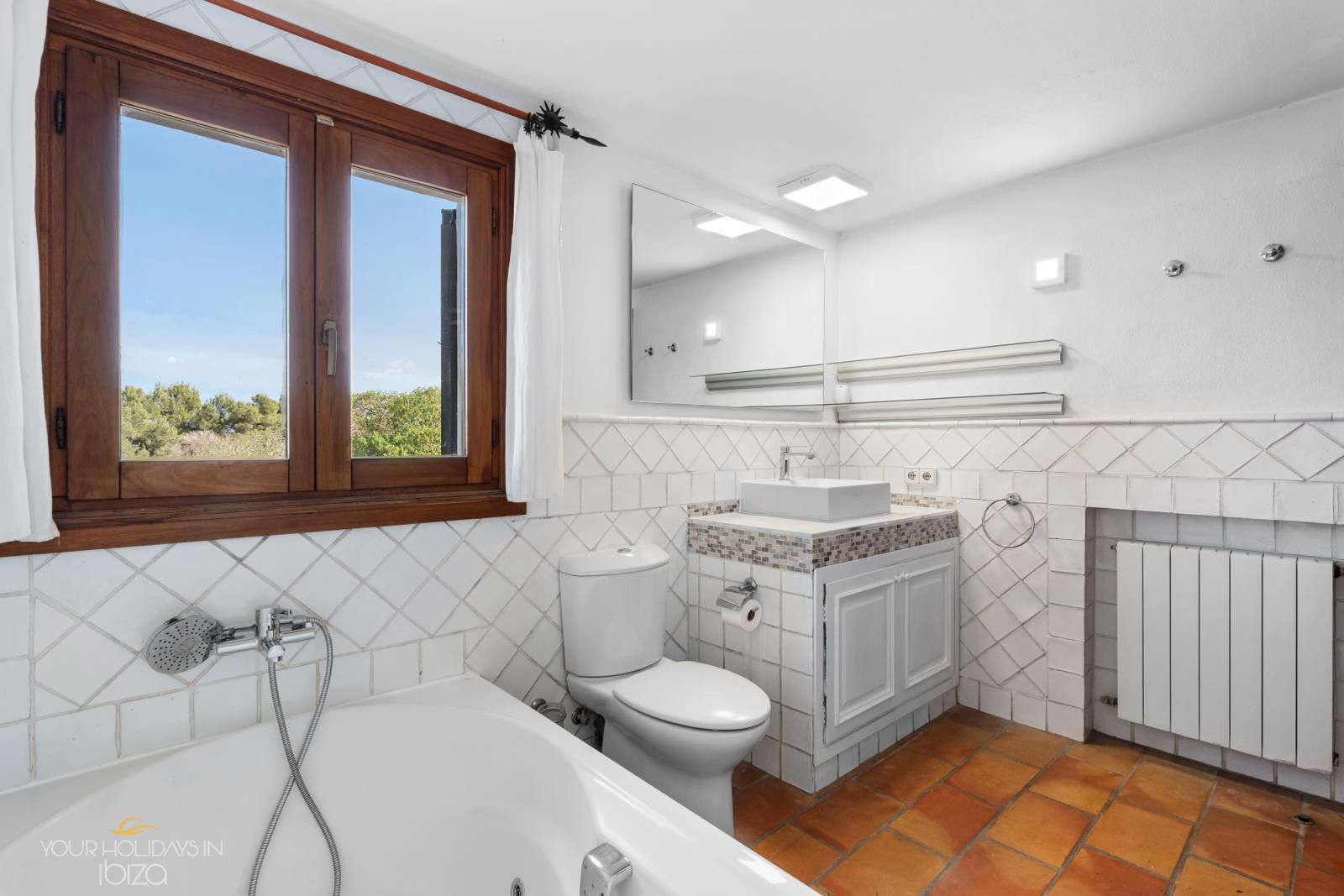 -Gorgeous panoramic views of the hills and the nearby Sa Caleta beach.