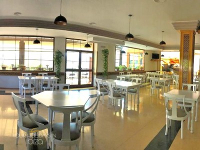 Dining room with a capacity of 160 people, ideal for large groups and tourists who wish to enjoy local gastronomy. Additionally, it has a celebration hall for up to 400 guests, perfect for weddings, corporate events, conferences, and family celebrations.